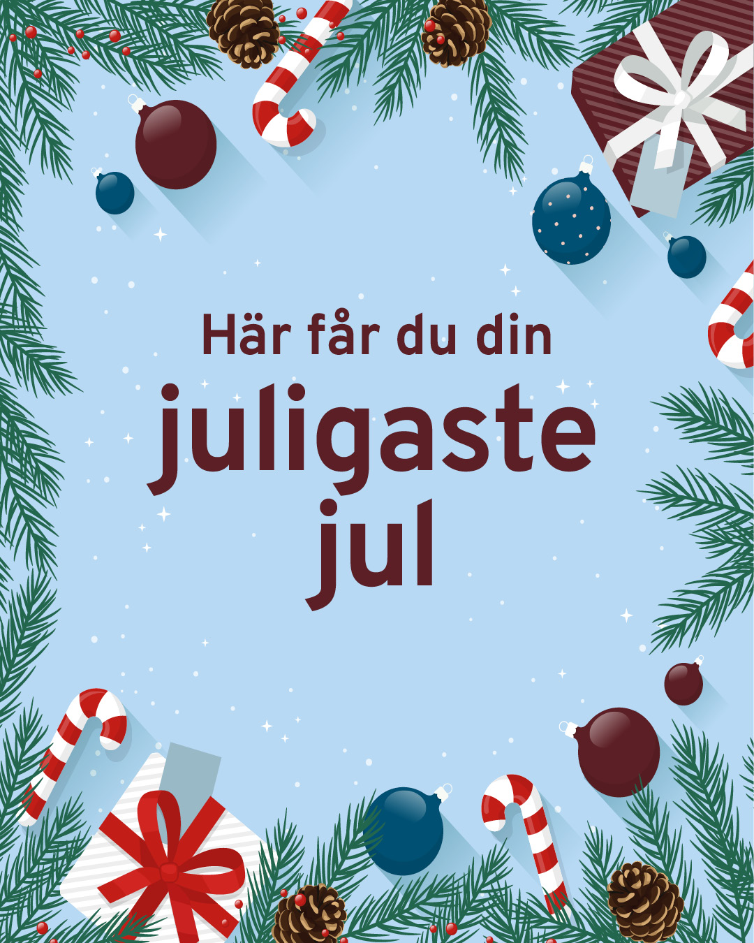 Här hos oss finns allt du behöver för julen. Från klapparna, pyntet och den goda julmaten. Men också det som gör julen ännu juligare: pysslet, glöggen, myset